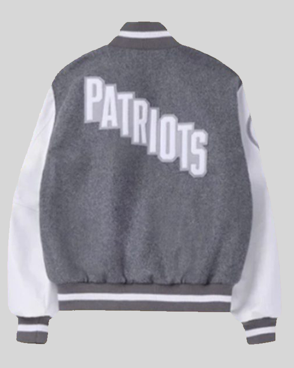 AFC Divisional Playoff 2026 Robert Kraft New England Patriots Grey and White Full Snap Logo Varsity Jacket