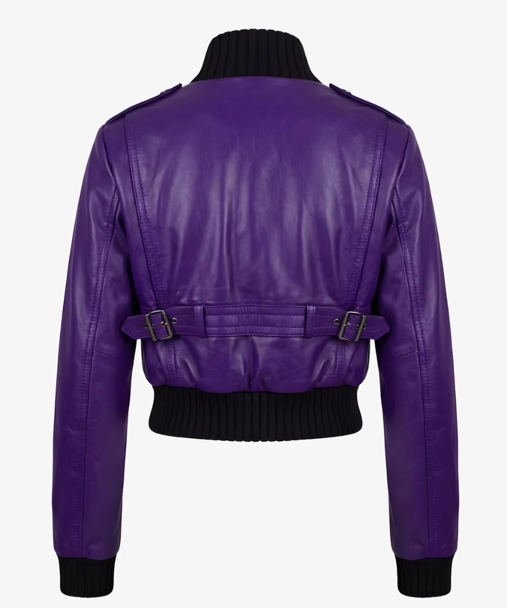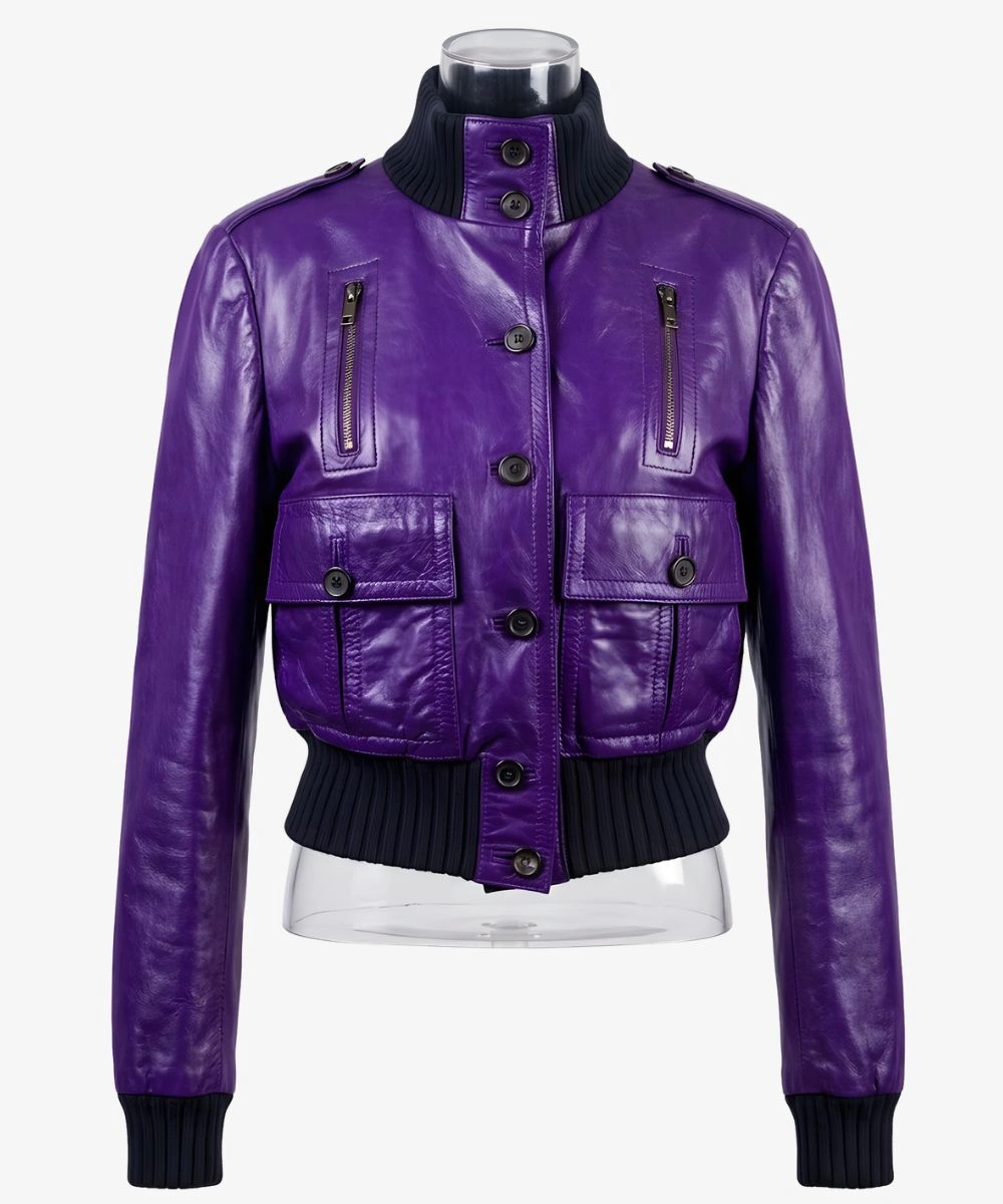 The Surprising Arrival at Coachella 2026 The Madonna Purple Leather Jacket feels opulent and superior right away because it is made of real leather. The smooth and soft viscose lining inside makes it comfortable to wear for extended periods of time. The buttoned front fastening gives it a timeless appearance. It also has a sleek, modern edge that is both striking and cosy to wear thanks to the stand-up collar.