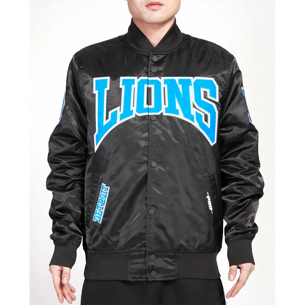 Detroit Lions Emblem Crest Black Full-Snap Satin Jacket