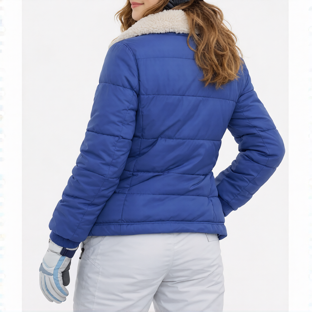 Blue Nylon Puffer Jacket with Shearling Collar and Viscose Lining